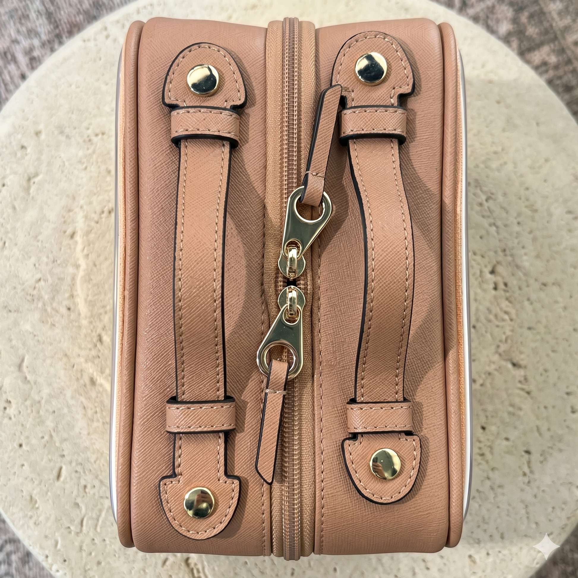 ✨🧳 Travel with style—your makeup deserves better storage! The gold-toned zipper and sturdy handle enhance its overall premium feel, making it not just functional but also a stylish accessory.